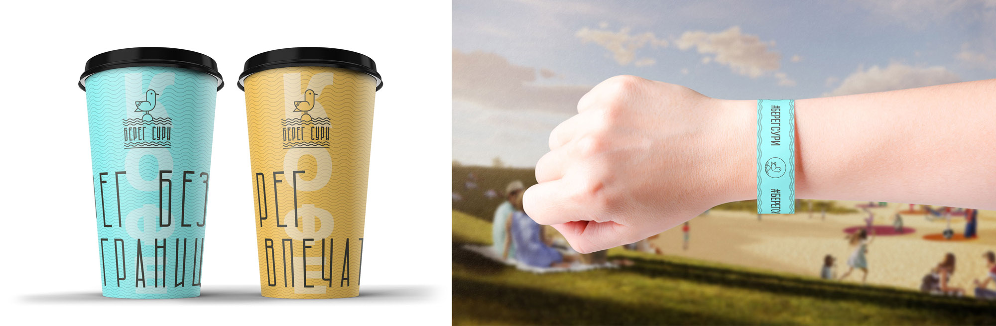 В составе социокультурной программы развития территории была разработана айдентика Берега Сури с элементами фирменного стиля и изделиями, а также афишами по направлениям событийной программы и мероприятий: летние фестивали, музыкальные джемы, открытые мастерские и воркшопы.
